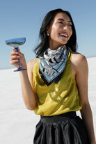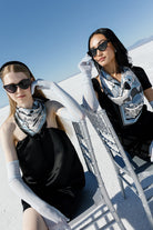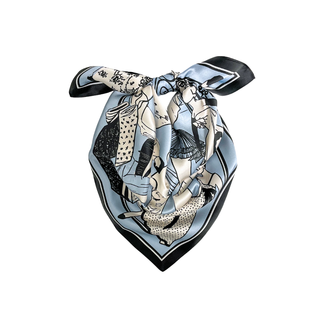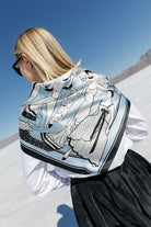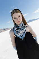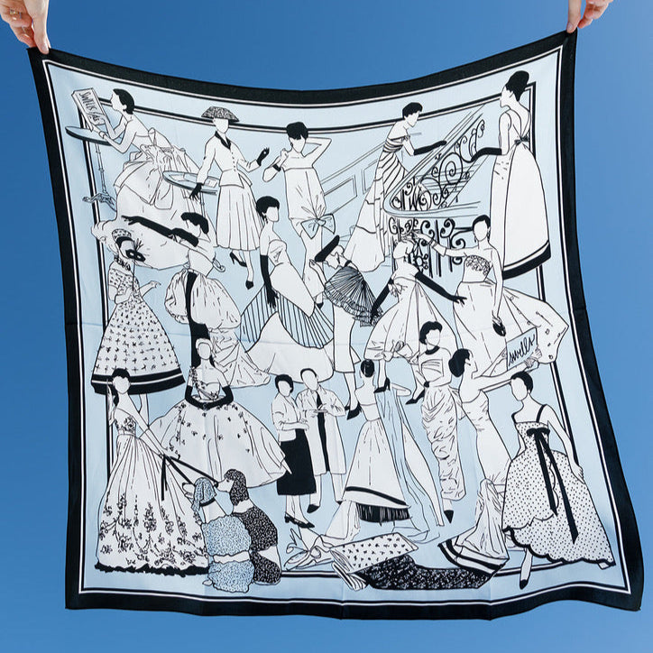 The Couture Scarf: wear the glamour, without the gown. Icy blues and high-contrast hues make up this timeless, 100% silk scarf.