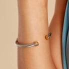 Introducing the Stella Cuff - a two tone gold cuff with dazzling cz accents for a glamorous, eye-catching look. Instantly elevate any outfit with this statement piece. Embody sophistication and style with the Stella Cuff.