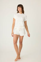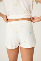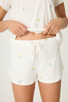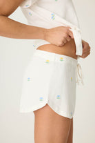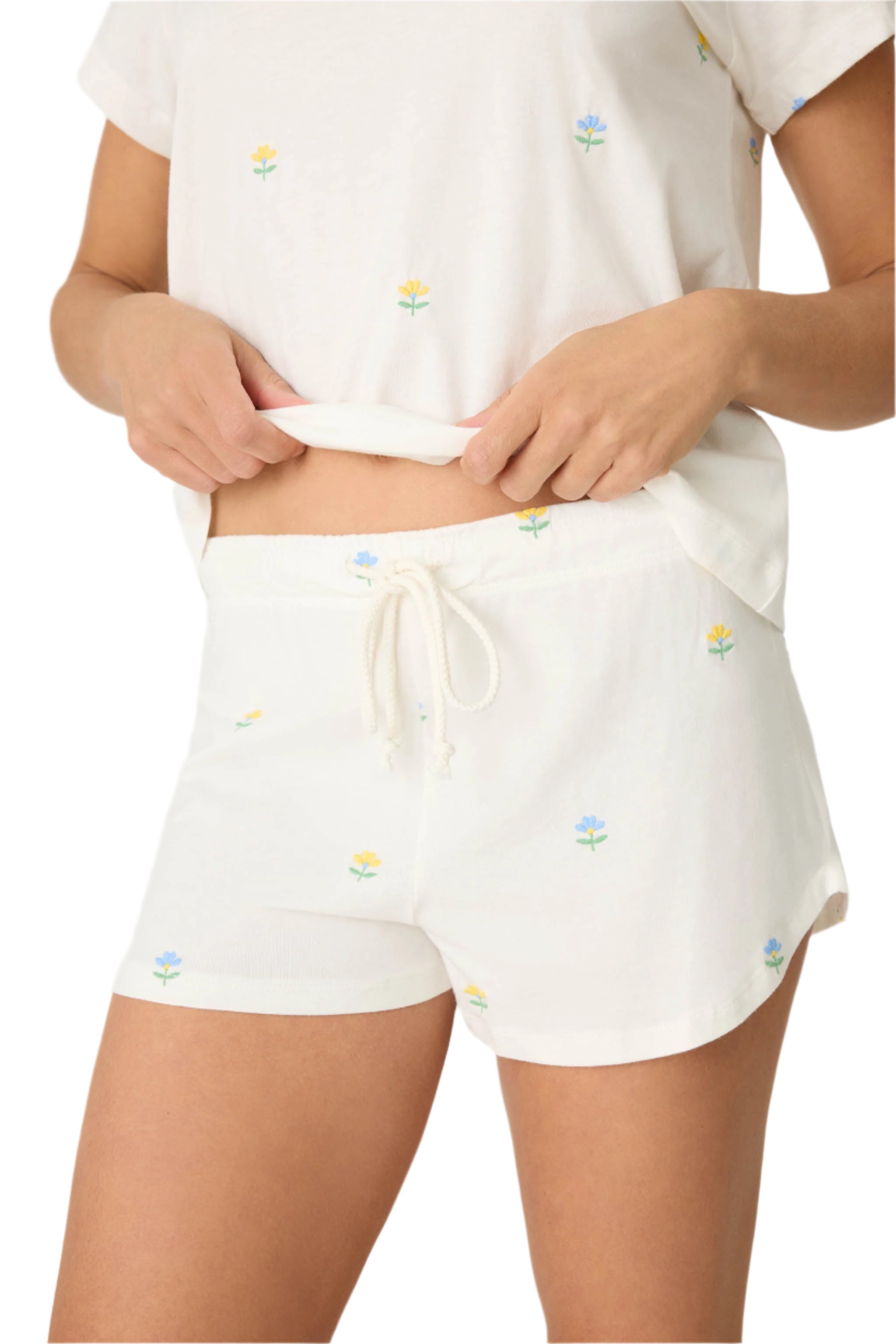 Softer than a cloud and blooming with charm, these ivory lounge shorts are dotted with delicate embroidered florals—like little petals dancing in the breeze. Crafted from cotton-modal jersey, they’re as comfy as your favorite tee but sweetly dressed up for a Sunday best kind of lounge day. The drawstring waist keeps things easy, whether you're unwinding or drifting off to dreamland.