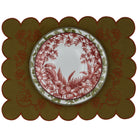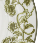 Part of our Shimla Social Collection, the Pembroke Safari Dinner Plate captures the whimsy of a dense jungle, intricately painted in a safari green with branching tendrils, lush leaves, and vibrant blooms. The enchanting foliage is displayed around the plate's border, creating a decorative frame and white center. If you look closely enough, you may even be able to spot a monkey hanging off a bough. Can be matched with Shimla Social coordinating pieces to create a complete place setting.