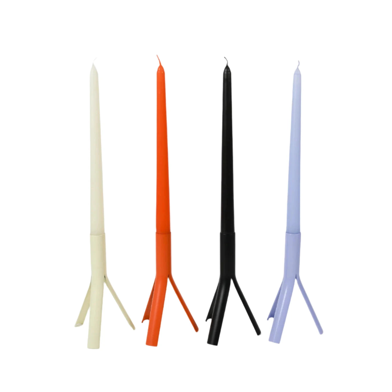 Take your space to new heights with these gorgeous steel “rocket” candle holders, available in orange, lavender, cream, and black. These holders match perfectly with our new taper candles or any other standard 7/8” (22mm) candle. Each Rocket includes a pack of 4 Candles of the same color as shown in the picture.