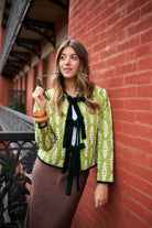 Your go-to layer from fall through the festive season. Our Quilted Rosy Jacket is crafted from plush yet lightweight cotton and finished with luxe forest green velvet trim for a subtle touch of texture. Digitally printed in our original Green Leaf print, the olive and ivory palette brings quiet drama to any look. With its classic silhouette and easy warmth, this jacket is as elegant dressed up as it is thrown over jeans for a walk around the block.