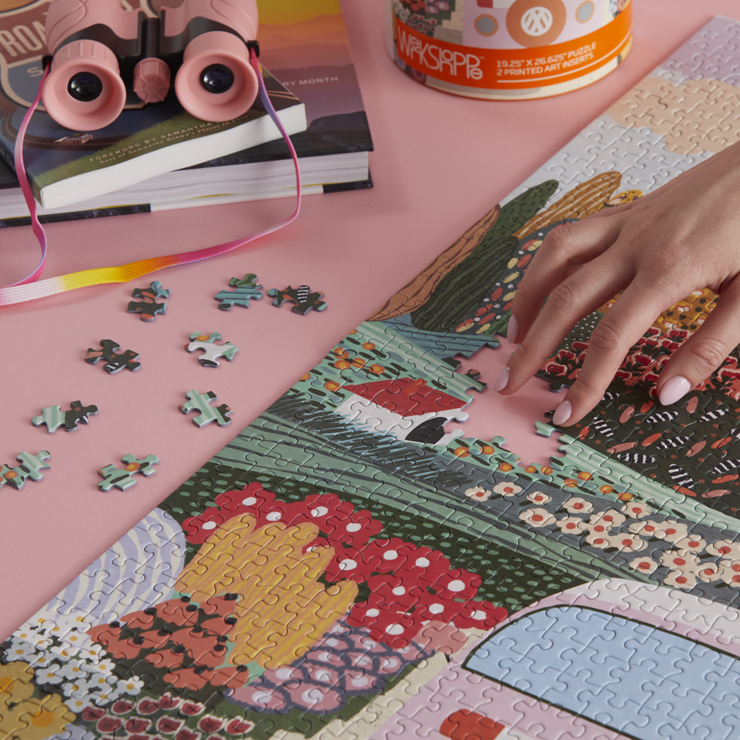 Get taken away in a VW Van in our trippy Road Trip puzzle! Colorful and picturesque flowers line a beautiful hillside, you'll want to make this 5 star puzzle again and again.