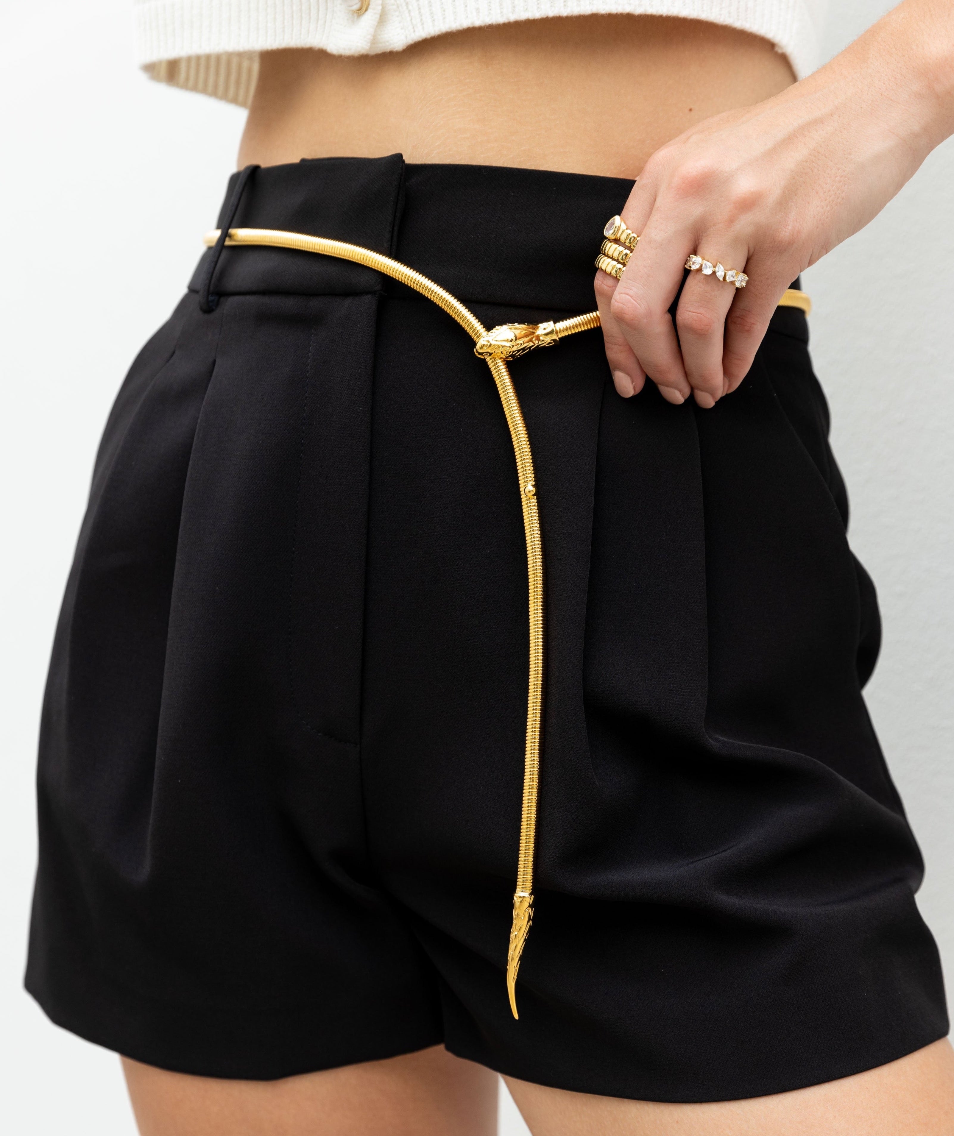 Unleash your wild side with the Serpent Chain! This gold multi-functional accessory can be used as a belt or necklace to complete any daring look. It'll add a touch of boldness to any outfit and give you the confidence to take risks. Let the Serpent Chain make a statement for you!