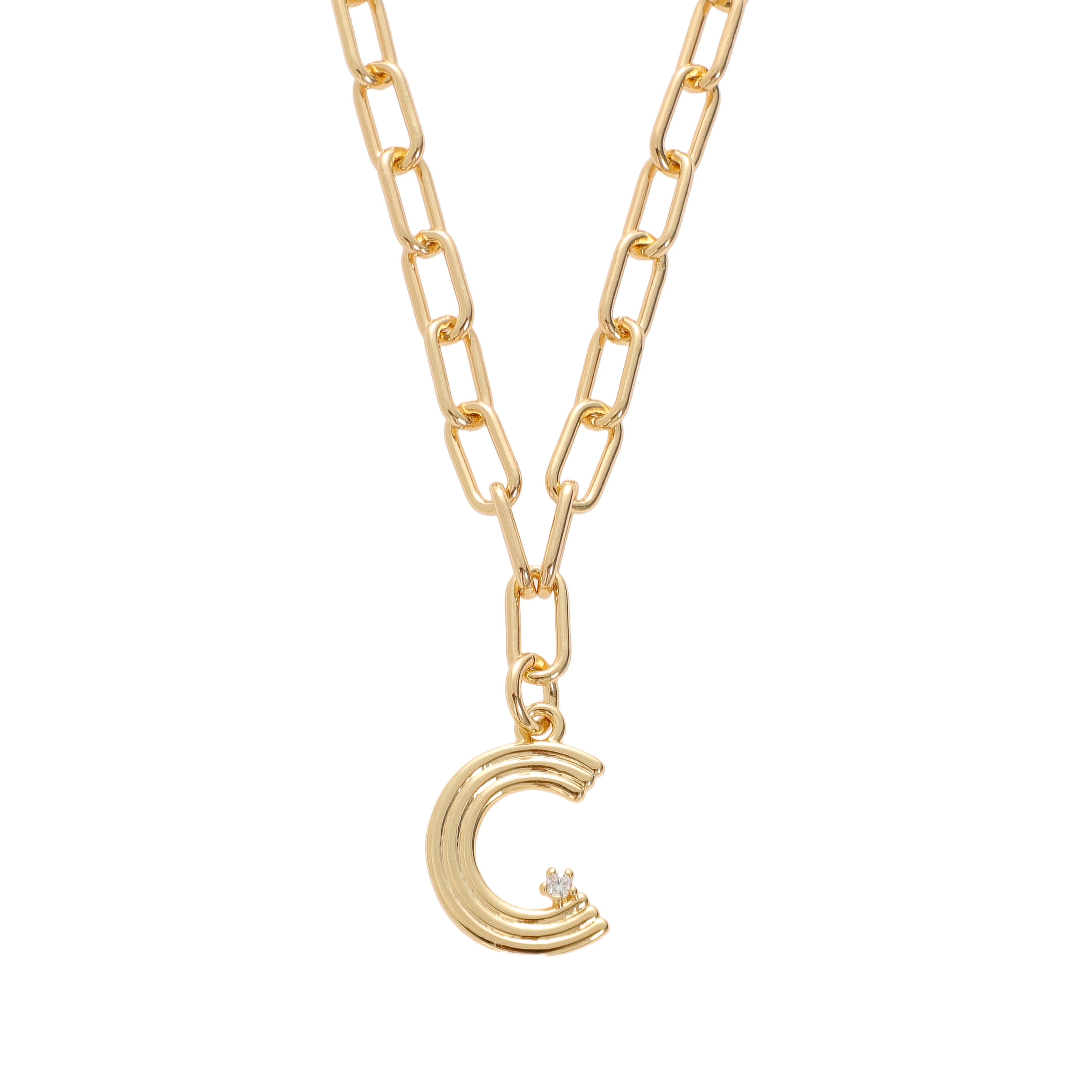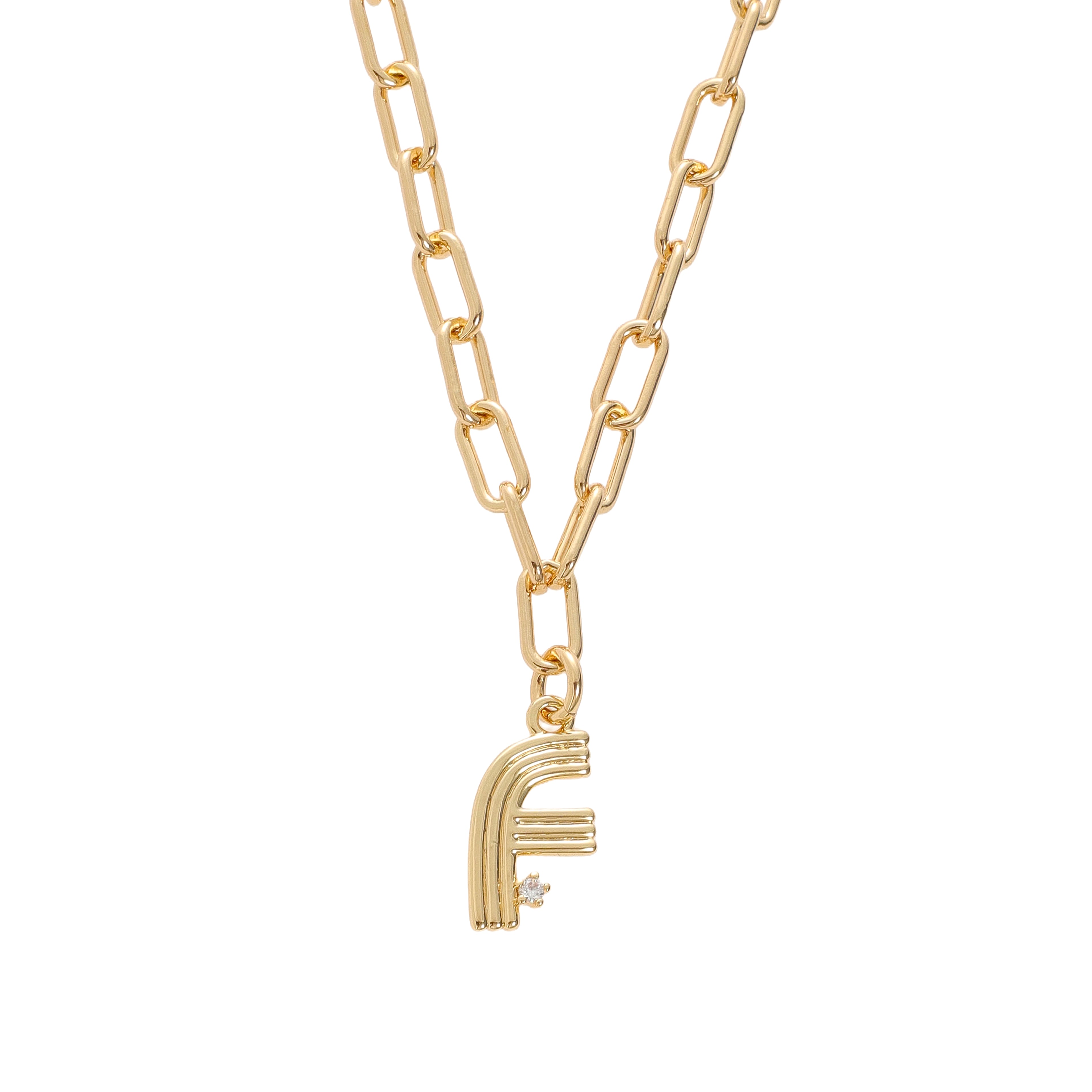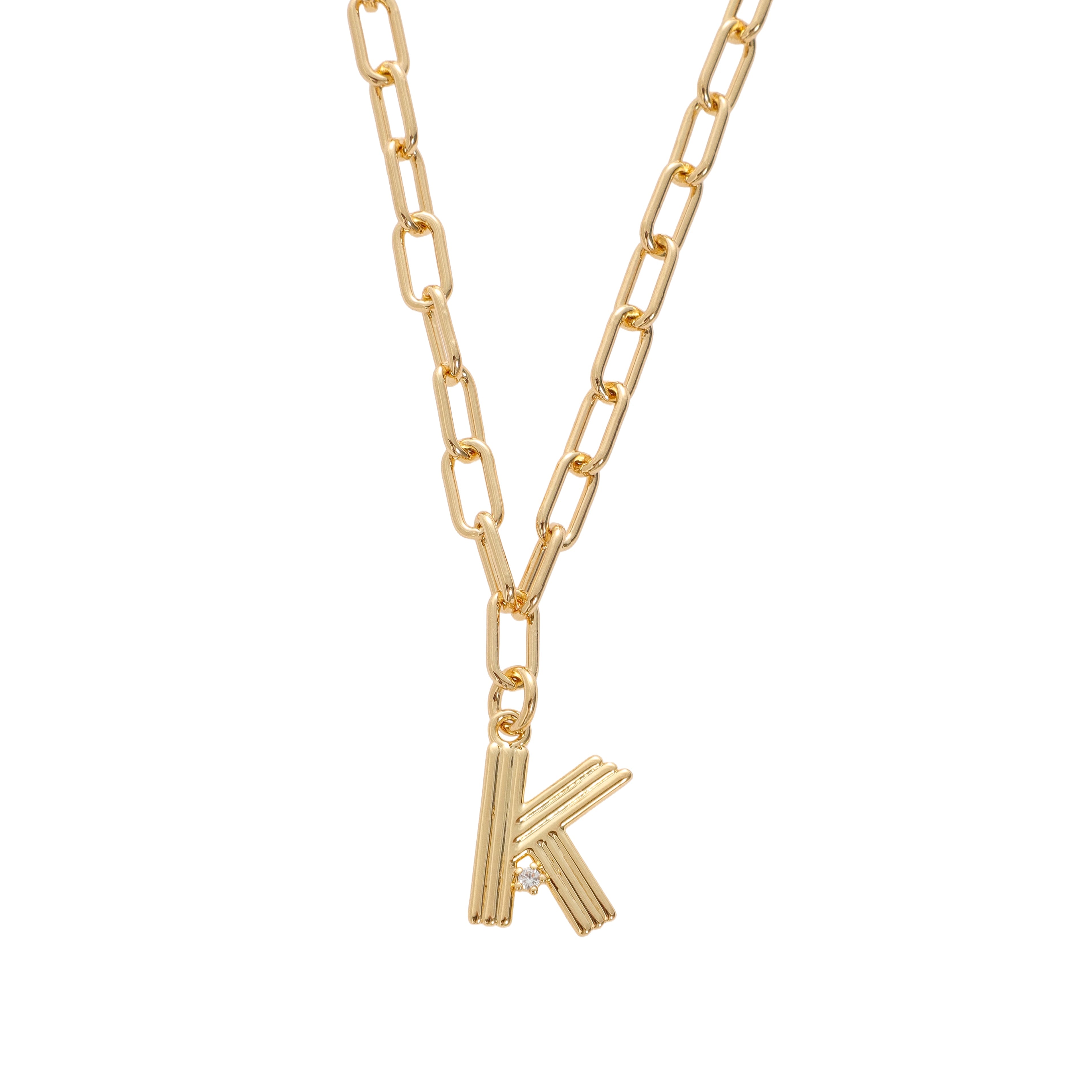 Looking for your new favorite charm? This one’s it. Our Deco Initial Charm adds a touch of personal style with a cool, retro edge. The fluted design and sparkling CZ detail give it that distinct Deco-inspired vibe, while the 18 karat gold-plated brass finish adds warmth and shine. Each initial comes on our signature 18k gold-plated brass link chain—bold, beautiful, and perfect for layering or wearing solo. A standout piece with timeless style.