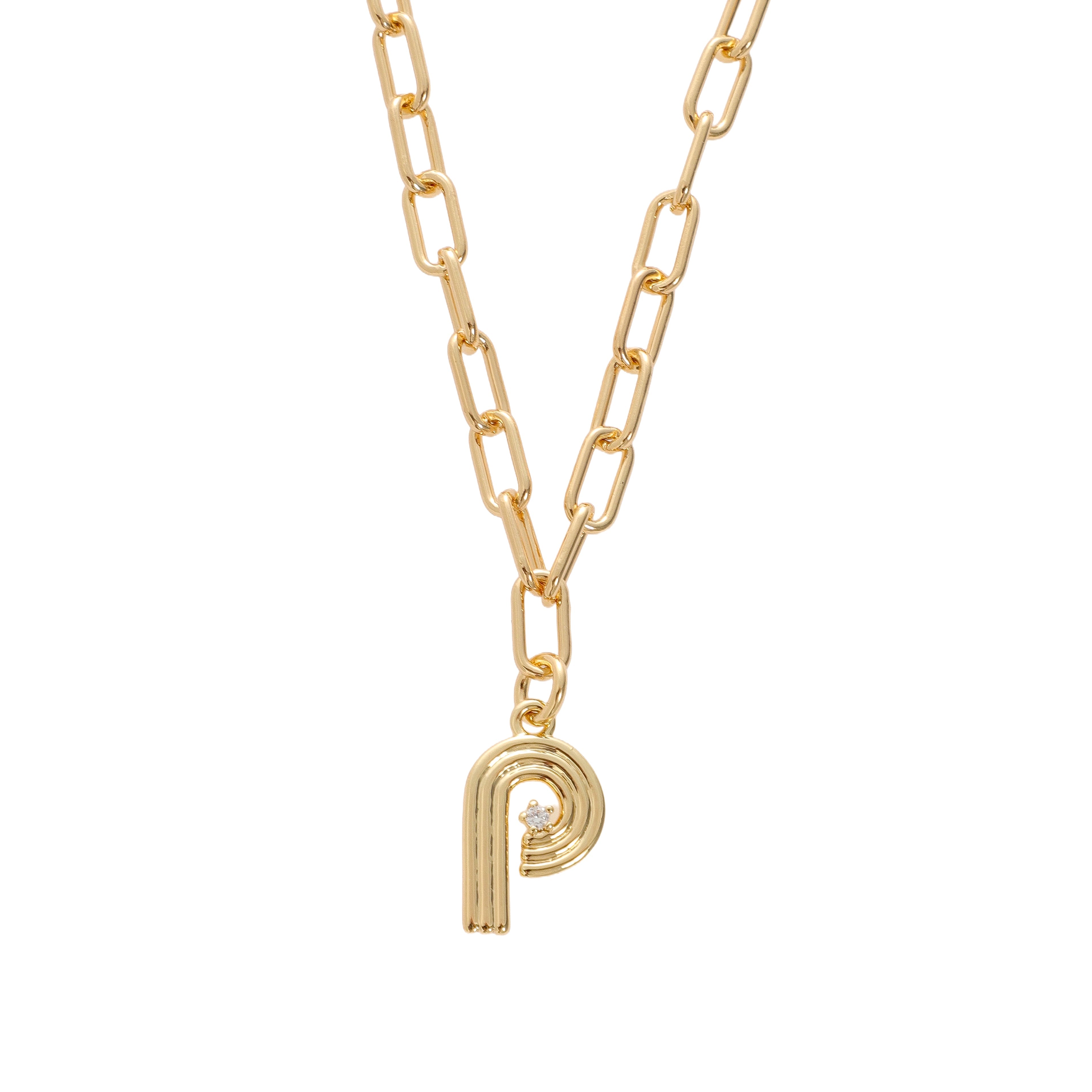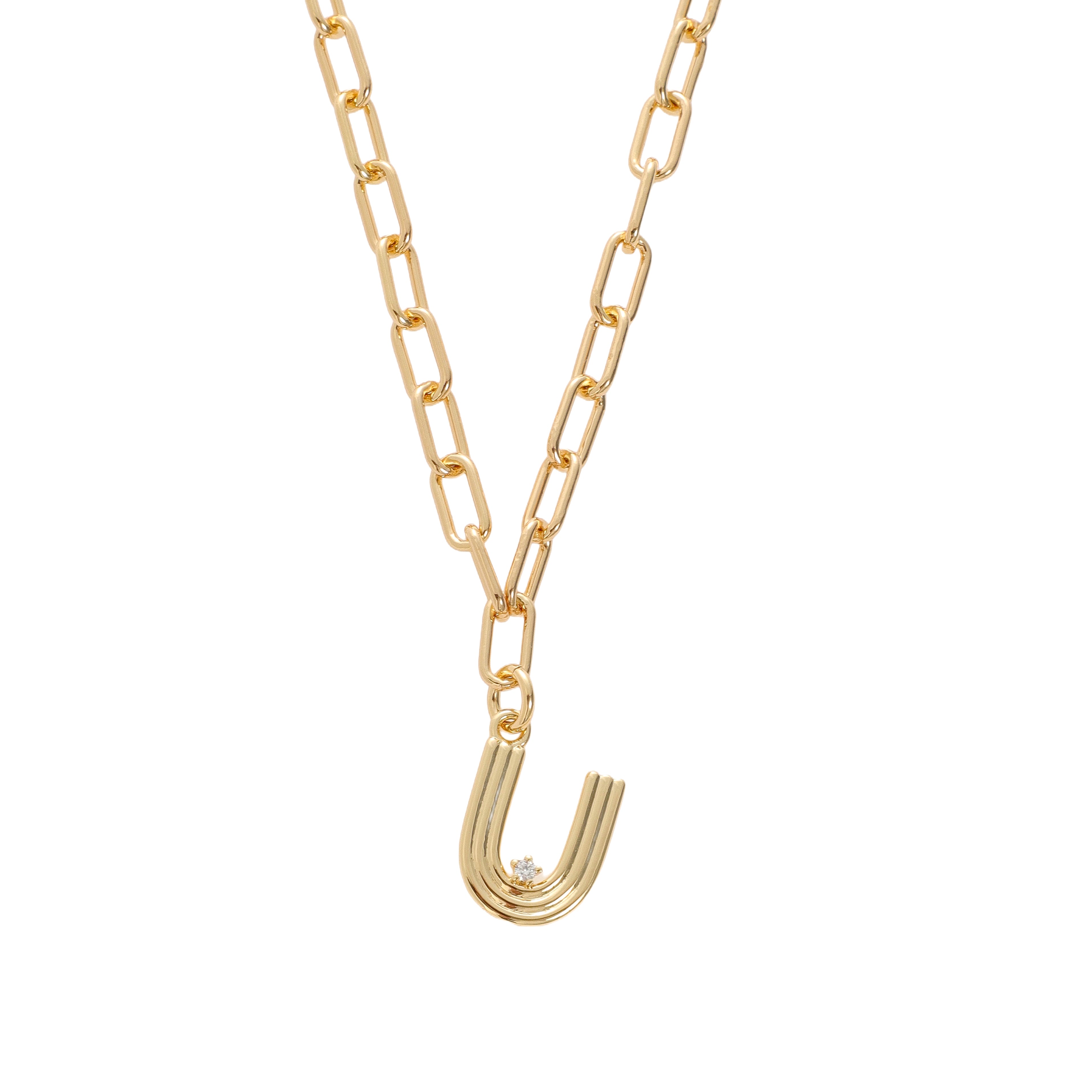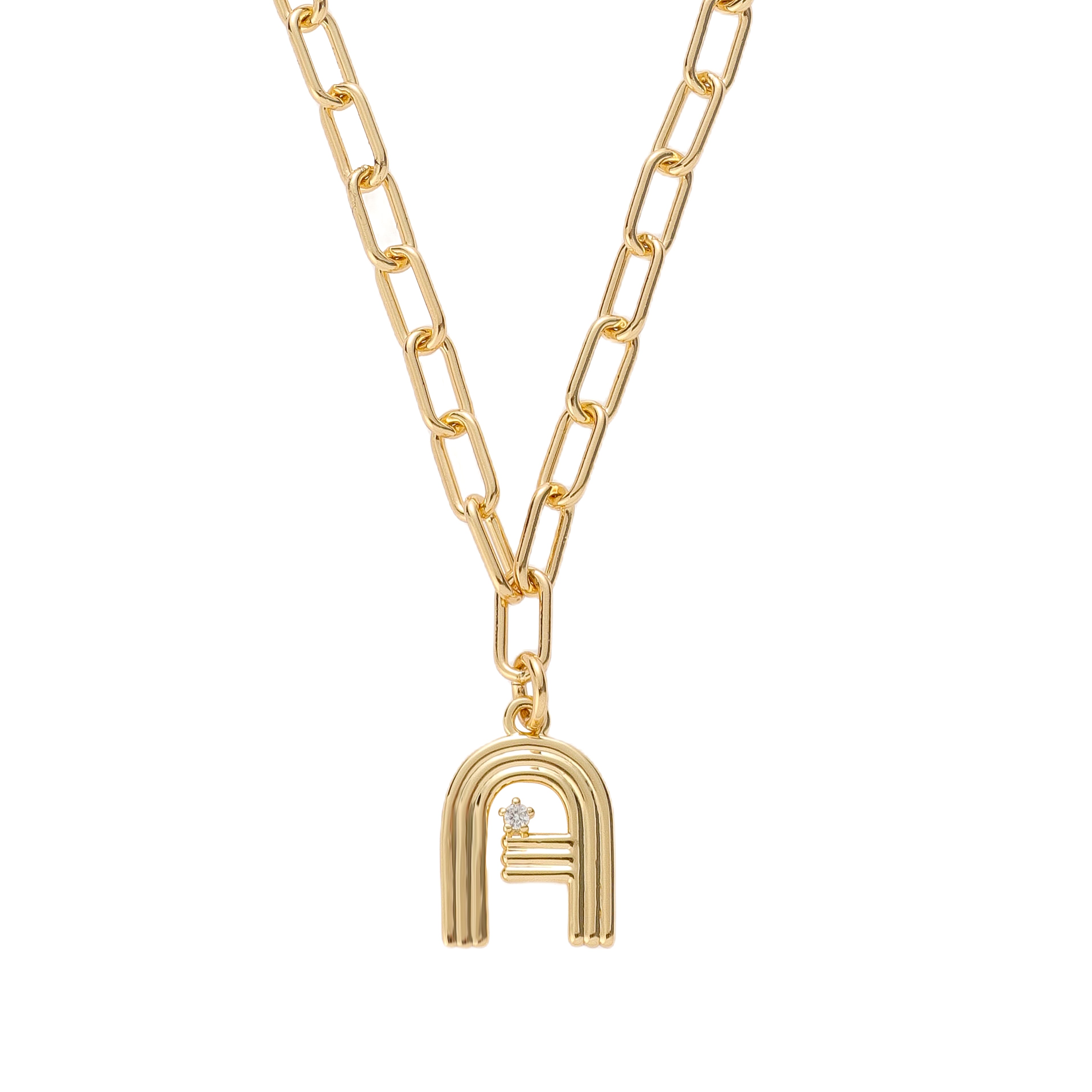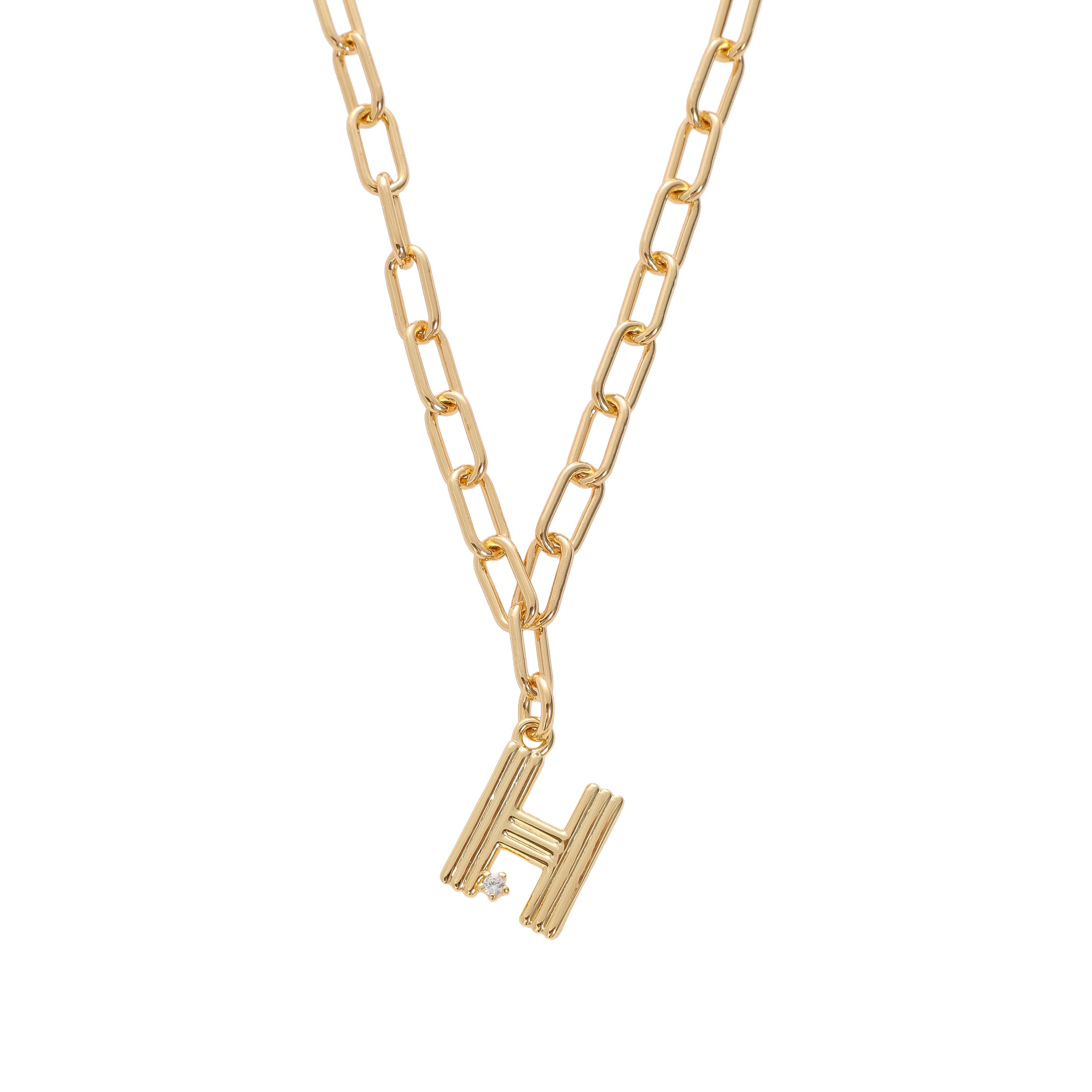 Looking for your new favorite charm? This one’s it. Our Deco Initial Charm adds a touch of personal style with a cool, retro edge. The fluted design and sparkling CZ detail give it that distinct Deco-inspired vibe, while the 18 karat gold-plated brass finish adds warmth and shine. Each initial comes on our signature 18k gold-plated brass link chain—bold, beautiful, and perfect for layering or wearing solo. A standout piece with timeless style.