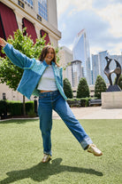 Welcome the winter blues with our Isabella Sherpa Jacket. This cozy and soft layer is your go-to cold-weather companion, lined with a quilted layer of cotton for added warmth without the bulk. A playful ruffle at the shoulder adds a feminine touch, while the zipper and pockets are trimmed in our original Blue Clover print for that signature Brooks Avenue twist. Whether you’re a mama cheering on your little ones at an early morning soccer game or a young gal taking your pup on a hot girl walk, our Isabella Sherpa Jacket brings unmatched cozy and quality all in one.