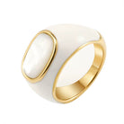 Celebrate sunny days with this Mother of Pearl Enamel Signet Ring. Its bright enamel and shimmering mother of pearl create a cheerful, stylish accessory perfect for summer fun.