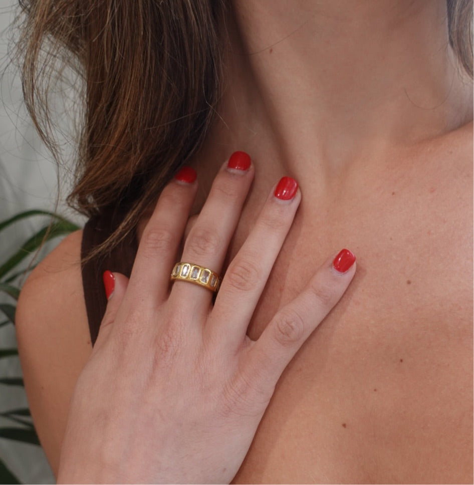Meet Peyton! She is our new shiny and gold ring! The gold band is gives it that rustic and chic look while the CZ Stones elevate the design to give it just the right amount of sparkle that every ring needs!