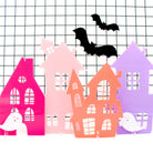 A cute set of Haunted Acrylic Houses with two friendly ghosts. Come in a set of 4 in dark pink, light pink, coral, and lavender. measure appx. Measure 5 -10" tall.