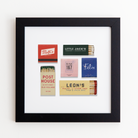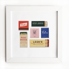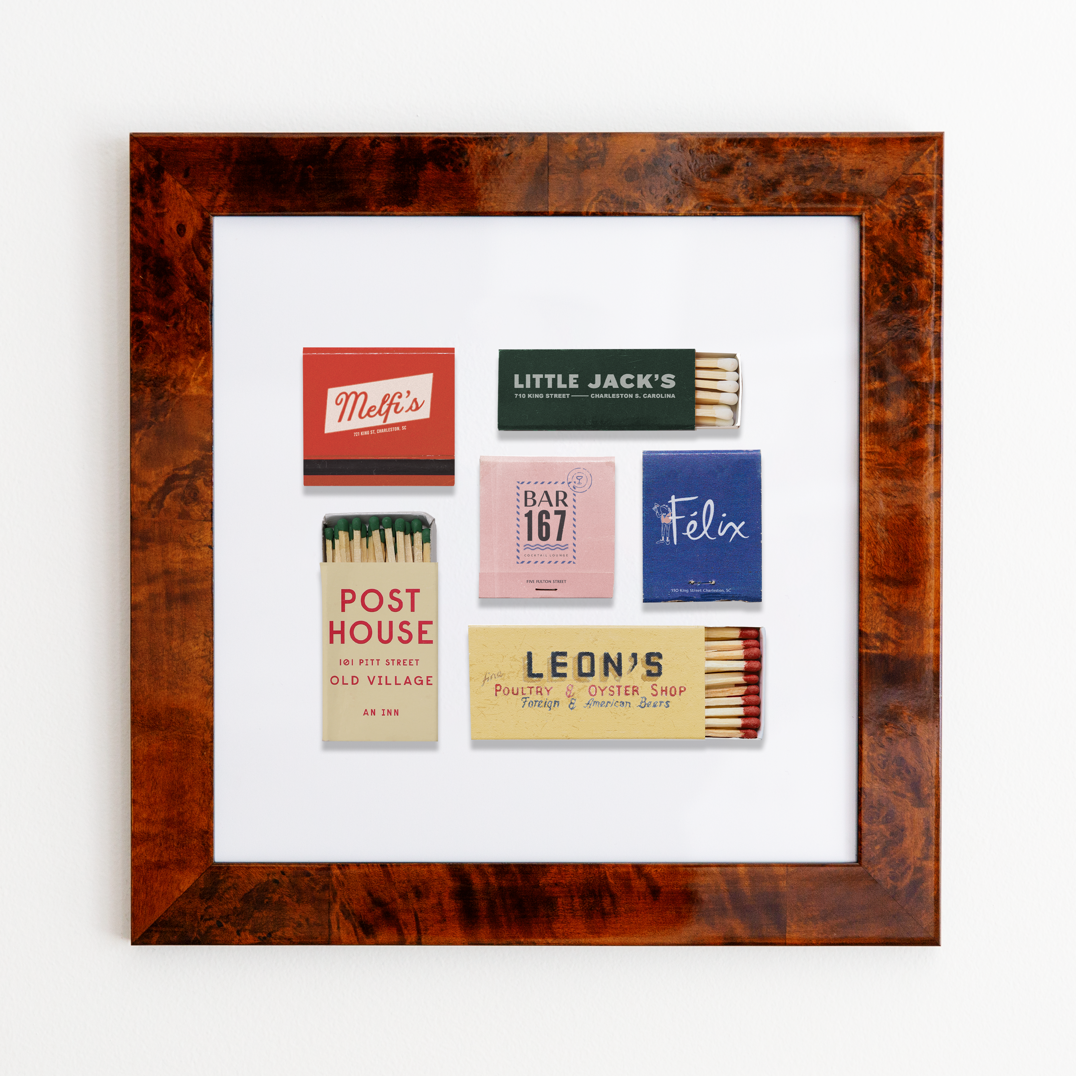All prints are 12 inches by 12 inches. The frames (14x14) have a white flat profile with clear acrylic for safe shipping