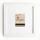 All prints are 12 inches by 12 inches. The frames (14x14) have a white flat profile with clear acrylic for safe shipping.