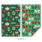 This reversible microfiber kitchen towel features an assortment of vintage tree ornaments on one side and coordinating holiday bows on the other.
