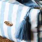 Designed by your request, Serpentine Stripe is back in a delicate baby blue. This design seems to be a simple stripe, but up close you’ll notice snakes dancing throughout. An unordinary take on one of the most timeless looks. These pythons will accompany you through your skincare routine (no matter how many steps). Why settle for ordinary?