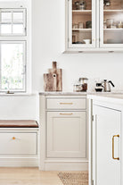 Unlacquered Brass "Lounge" Wire Drawer Pulls. These beautiful polished unlacquered brass cabinet knobs and drawer handles are an excellent fit as kitchen hardware. The finish on these items is unlacquered and will acquire natural patina as they age. The original look can be restored by polishing them with brass cleaner.