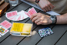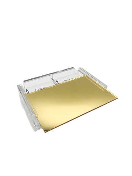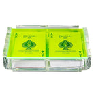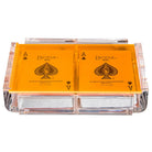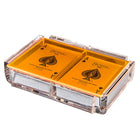Introducing the ultimate luxury "La Pinta" playing card for the discerning card player. Made from premium acrylic, this sleek and stylish card case is the perfect way to store and transport your playing cards in style. Available in a range of eye-catching colorways, it's the perfect accessory for the avid player or collector. The sturdy construction and secure clasp ensure that your cards stay protected and in pristine condition, while the smooth surface makes it easy to shuffle and deal. Whether you're heading to a tournament, playing with friends, or just keeping your cards organized, this acrylic card case is the ultimate accessory for any card enthusiast. Comes with standard index poker cards and a colored acrylic lid.