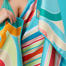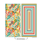 Reminiscent of the mod 60s, this towel has a fun retro-inspired paisley on one side and multi-color geometric concentric rectangles on the other, transforming boring into bold and beautiful.