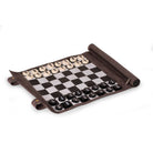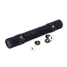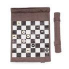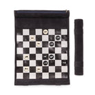 For the game lover on the go, this roll-up travel chess set with double snap closure and a discreet zipper compartment which stores your 32 chess pieces. The navy suede soft playing board is accented with black and white squares to make for a perfect playing board. Now you can enjoy a portable version of a popular board game while traveling, at a picnic, or in your office.