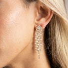 Indulge in luxury with these exquisite Ashtrid CZ Drop Earrings. Sparkling CZ stones adorn these elegant earrings, adding a touch of sophistication to any outfit. Elevate your style and make a statement with these timeless and tasteful earrings.