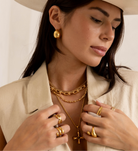 The Carly Crescent Hoop earrings are the perfect combination of grace and glamour. Crafted from 18K gold, their shimmering crescent shape will add an elegant touch to any look while making a chic statement. Make heads turn and stand out from the crowd with these luxurious and eye-catching hoops!
