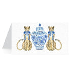 These preppy cheetahs with big blue bows and ginger jar will make the perfect addition to your next party. One side has the perfect place for your guests name, the other adds a decorative flair to your table.