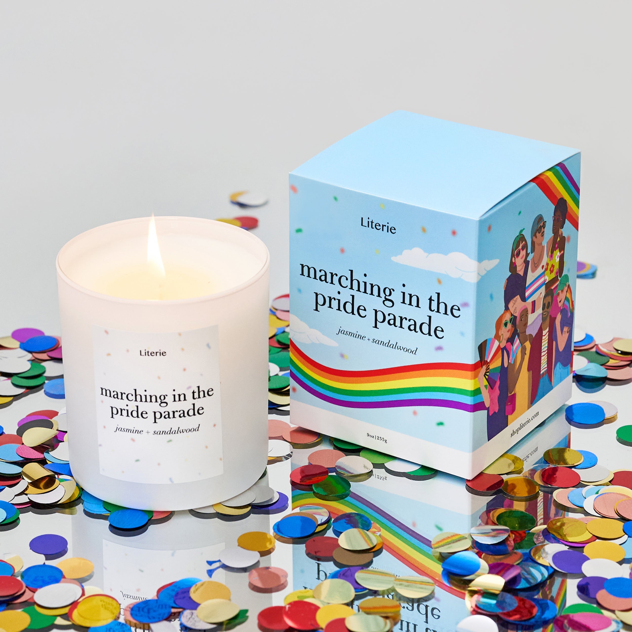 Rainbows everywhere, blasting music, dancing in the street. It must be time for the Pride Parade. Proceeds from this candle will benefit multiple non-profits across the US that organize and plan LGBTQIA+ Pride events each year.