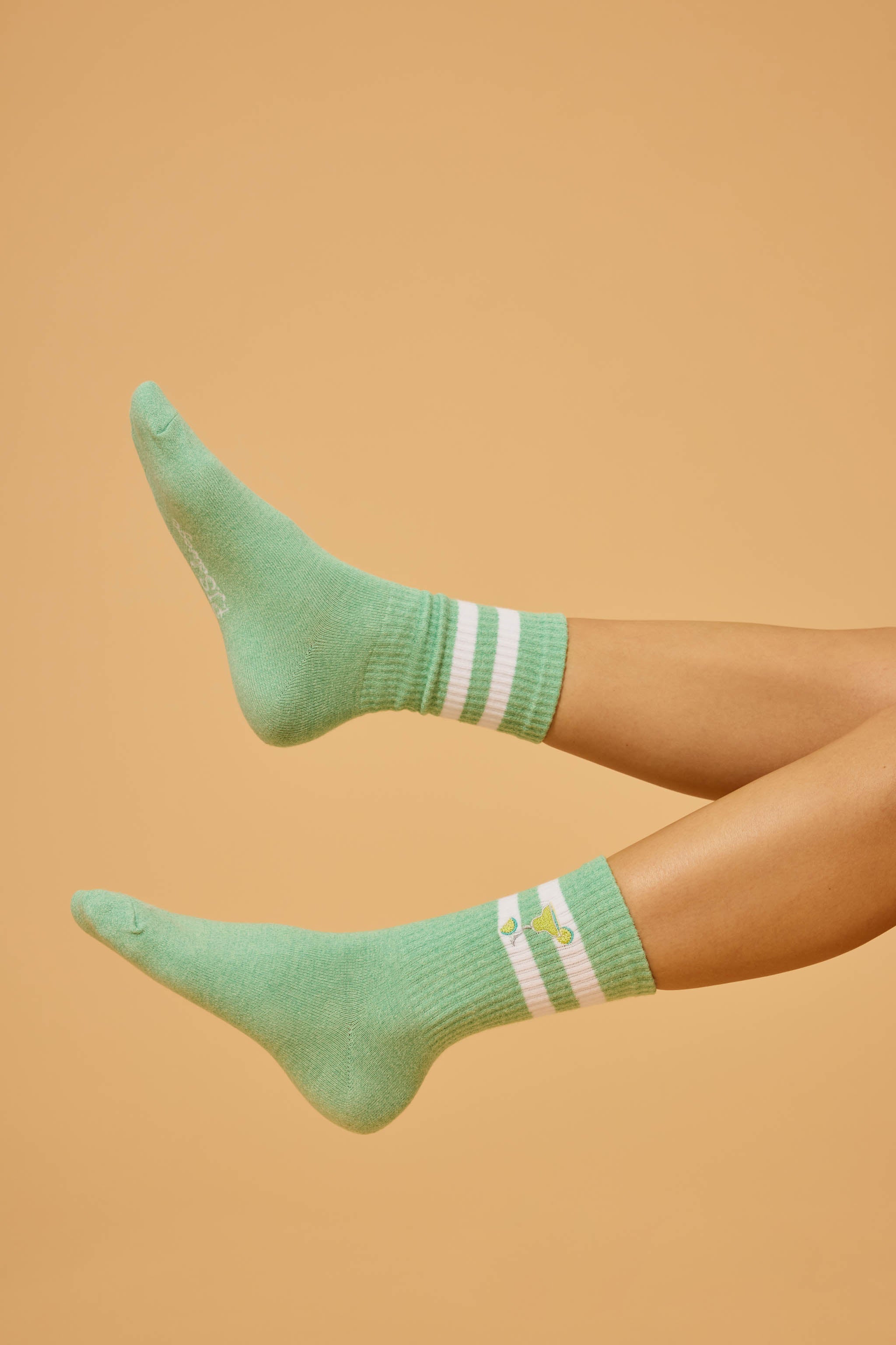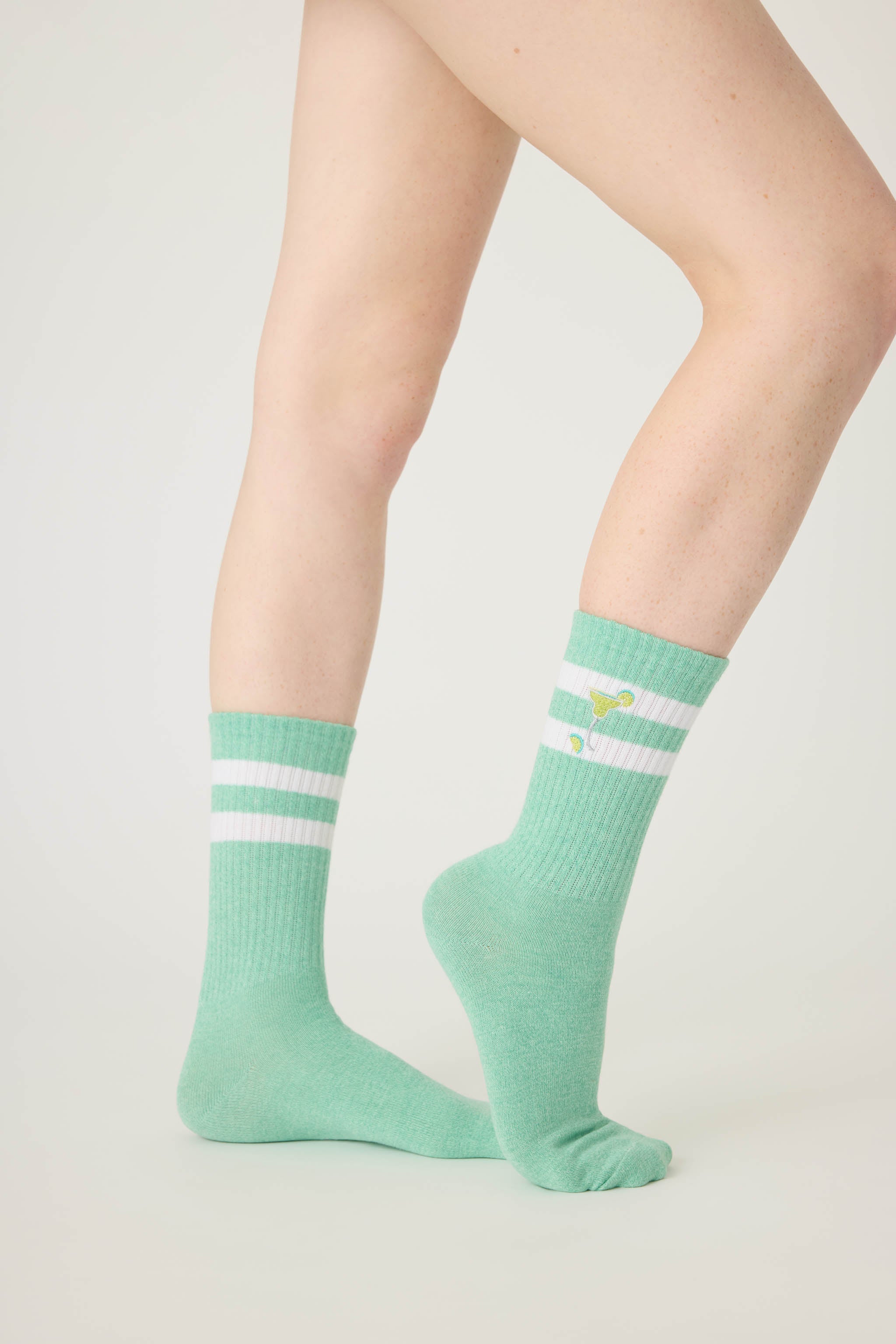 Shake up your style with these light green crew socks featuring a margarita glass design—playful and refreshing.
